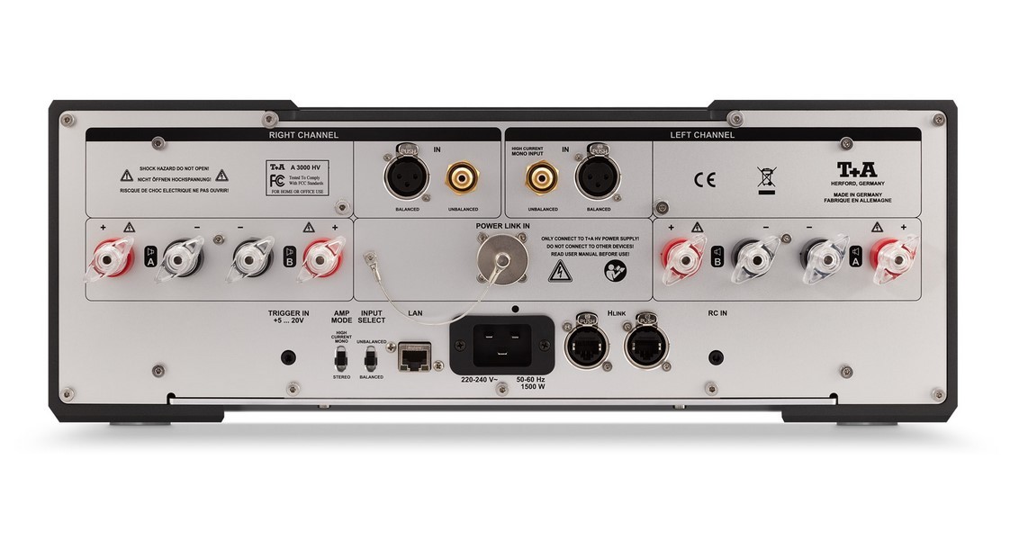 Die A 3000 HV ist als ideale Leistungsendstufe und Ergänzung zum Vorverstärker P 3000 HV konzipiert. Sie arbeitet als Stereoendstufe, kann jedoch auch in den Monobetrieb geschaltet werden und verfügt in diesem Modus über die doppelte Stromlieferfähigkeit sowie den erweiterten Class-A-Bereich. Anstelle einer Brückenschaltung kommt ein Parallelbetrieb der Endstufen zum Einsatz, um eine maximale Leistungsstabilität und Klangreinheit zu gewährleisten.